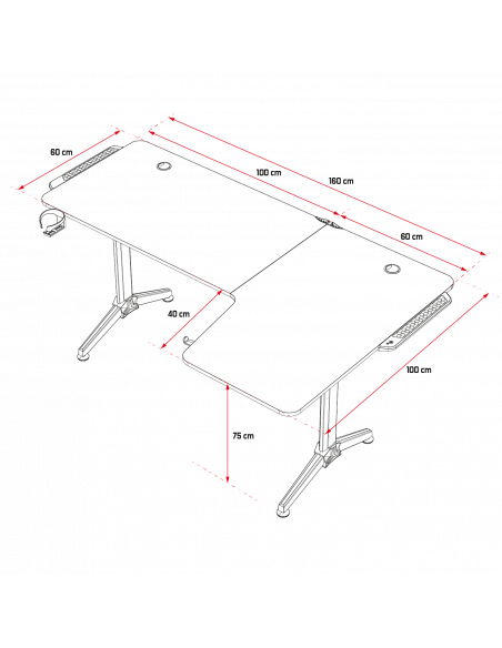 ALL IN ONE Das Büro ist mit vielen Zubehör ausgestattet.Ein Support, um seine gamer Headset an der Hand zu haben.Ein Gobelett, um niemals seinen Getränk in Falle der Wut aufzuhören!Und für einen immer sauberen Raum integriert der Platte 2 runde Kabeln und unter einem Koffer, um auch Ihre Kabel und Multiplikationen zu speichern.