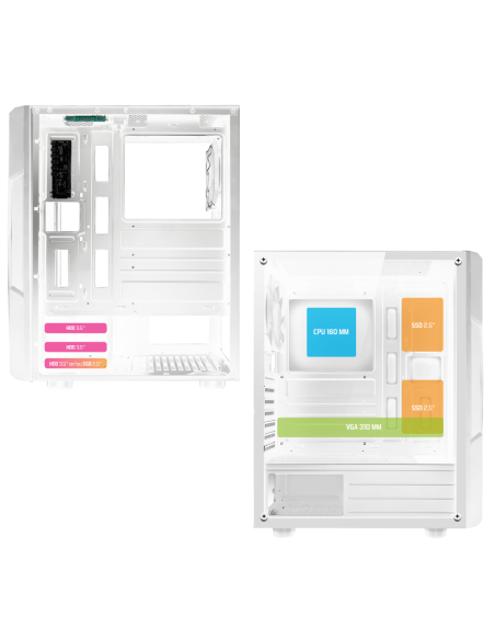 CLONE SERIES: Clone 3 ist ideal für Ihre Gaming-Konfiguration. Geräumig, es ist kompatibel mit Mini-ITX ATX Mainboards und bietet eine 310 mm-Chart und bietet eine optimierte und farbige Belüftung dank seiner 2 Ventilatoren inklusive und 6 zusätzlichen Standorte. Sein kühnes Design führt zu transparenten gehärteten Glaswänden und einem ARGB-System, das mit den meisten Motherboards kompatibel ist, die mit einem ARGB 3 Pins / 5V-Steckverbinder ausgestattet sind.