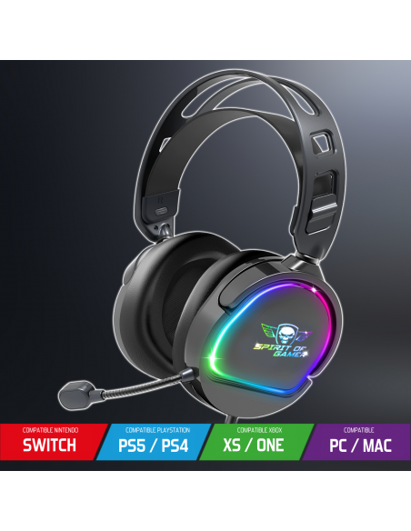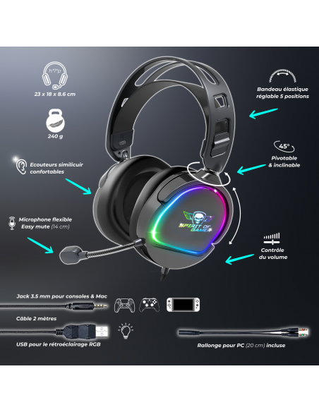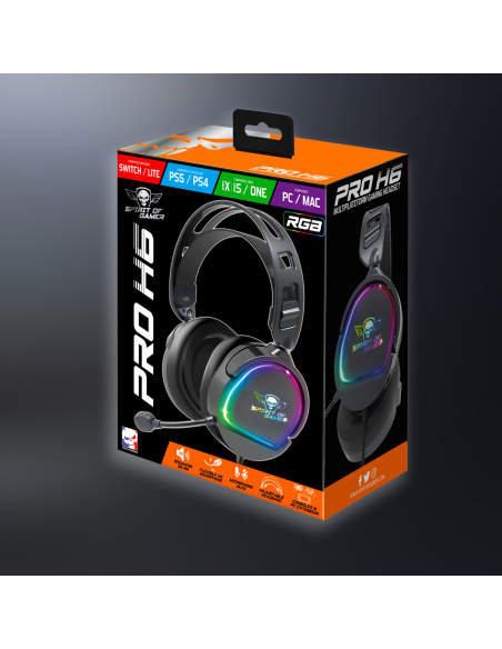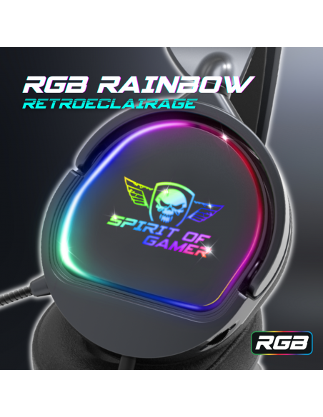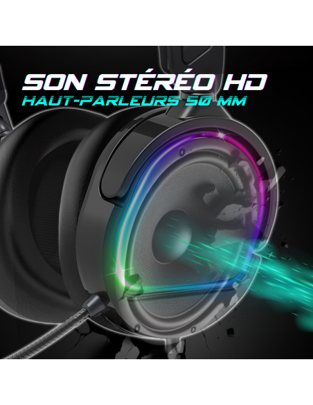 RETRO-ECLAIRAGE Dank seiner USB-Buchse, die dem RGB-System gewidmet ist, wird das PRO H6 beleuchtet und bietet eine ultra-design RGB Rainbow Hintergrundbeleuchtung. Tauchen Sie ein in eine faszinierende visuelle Atmosphäre und lassen Sie Ihre kopfhörer glanz mit eleganz und persönlichkeit während ihres spiels.