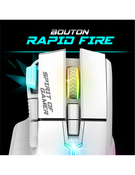 RAPID: Das Lächeln uLTIMATE 600 Wireless ist der perfekte partner, um ihr gaming-arsenal zu vervollständigen. Der PixArt 3312 Sensor bietet eine einstellbare Auflösung auf 3 Ebenen (1200, 2400, 4800 DPI), um die Genauigkeit zu gewährleisten ausnahme perfekt für alle arten von spielen. Mit 8 Tasten, darunter 1 RapidFire, Beschleunigung bei 10 G und einer Geschwindigkeit von 4000 fps, wird diese Maus Ihre geringsten Bewegungen beantworten. Mit seiner RGB Rainbow Hintergrundbeleuchtung fügt die Maus Ihrer Spielsitzungen eine immersive Atmosphäre hinzu.