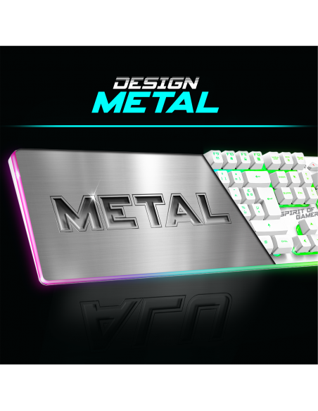 METAL: Schlüssel uLTIMATE 600 Wireless ARTIKEL bietet ein halbmechanisches aufprallerlebnis und praktische multimedia-kürze. Genießen Sie den Spielkomfort mit der einstellbaren Höhenverstellung der Tastatur und der robusten Metallkonstruktion. Die RGB Rainbow Hintergrundbeleuchtung fügt einen visuellen Touch hinzu design.