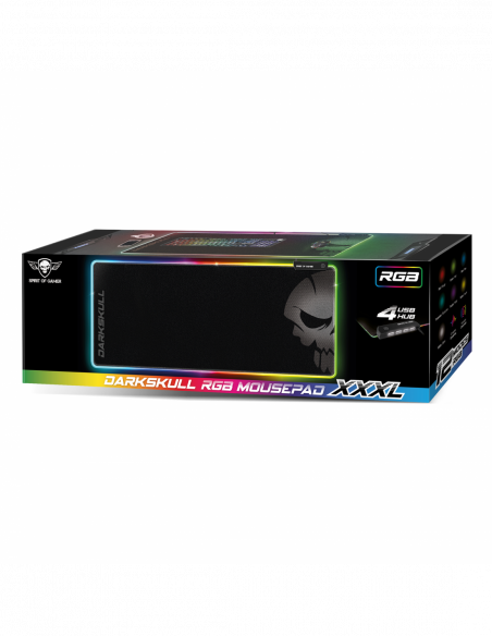 DARSKULL HUB RGB XXXL: La alfombra DARSKULL HUB RGB tamaño XXXL mide 90 x 40 centímetros para un espesor de 4 milímetros. ofrece suficiente espacio para alojar el ratón y el teclado. Desarrollado y probado por nuestro equipo de jugadores, las alfombras darksull son compatibles con sensores ópticos y láser.