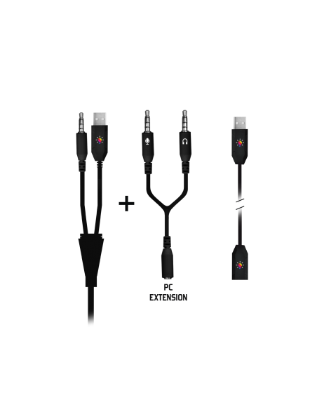 • SE TRATA DE UN SISTEMA DE CONTROL DE LA CALIDAD DE LOS PRODUCTOS Los auriculares se conectan directamente a los puertos de audio HD de su PC mediante el cable principal. Se incluye una extensión de 20 cm para conectar el auricular al enchufe de 3.5 mm de su PlayStation, Xbox, consola Nintendo Switch e incluso su teléfono inteligente, su Mac.