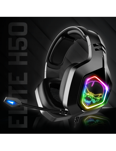 • ESCOGE TU ESTILO: 2 diseños disponibles, ELITE-H50 Edition está disponible en negro y en camuflaje Artic: elige el estilo que más te guste. Sus altavoces de 50 mm ofrecen sonidos de una claridad asombrosa y bajos poderosos. Claro que sí, escucharás los ráfagas del MP5 como si estuvieras allí.