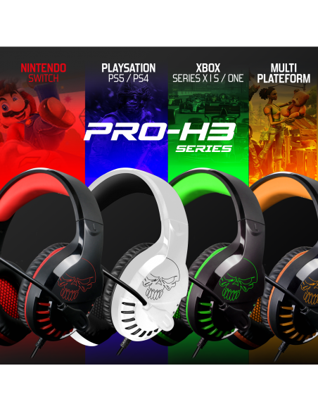 ¿ QUÉ ES PRO-H3 Edition es una nueva gama de auriculares estéreo 2.0 especialmente diseñados para sumergirte directamente en el corazón de la acción. Los altavoces de 50 mm ofrecen sonidos de una claridad asombrosa y graves poderosos.