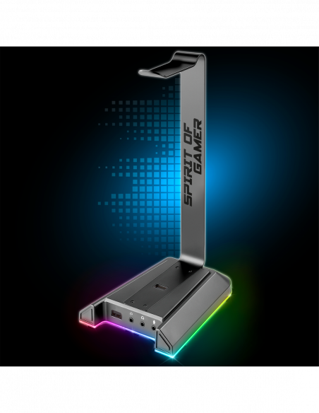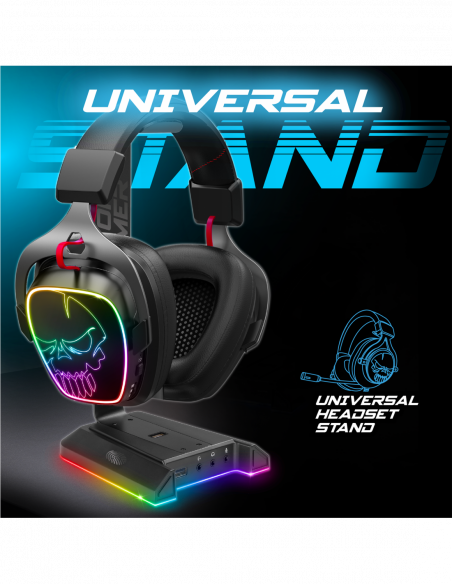 ¿ POR QUÉ El soporte se ilumina y ofrece una retroiluminación RGB de diseño ultra de su base. Usando su botón sensible huella , elige uno de los 9 efectos predefinidos: Neón, Chroma, Breathing.