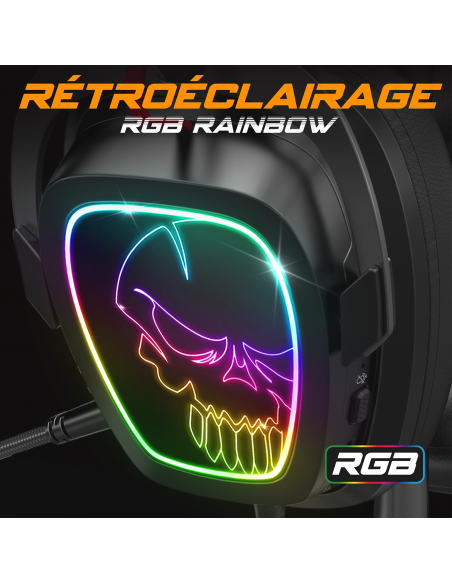RGB ARCO IRIS: Da vida a tu configuración con la luz de fondo Rainbow RGB de los auriculares. Con su arco acolchado de aluminio ajustable, sus almohadillas acolchadas de silicio... el casco es extremadamente cómodo.