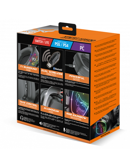 CONECTIVIDAD INALÁMBRICA DUAL Conecte fácilmente los auriculares a su PC, Mac, Switch o teléfono inteligente a través de Bluetooth o cambie al modo inalámbrico de 2,4 GHz para conectarse a su PS4 o PS5.