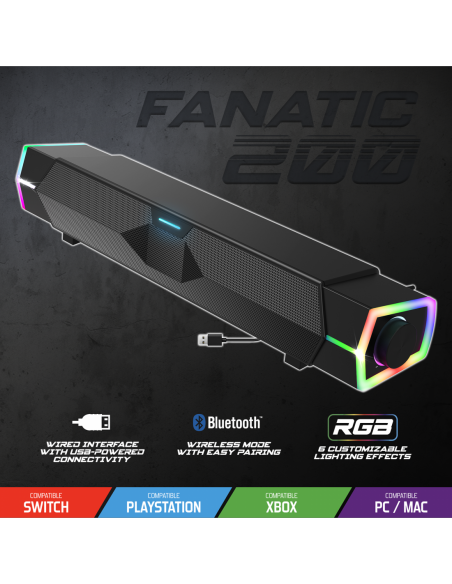 Pensée pour les gamers multi-plateformes, Fanatic 200 est compatible PC, Mac et toutes les consoles. Plus besoin de jongler entre différents systèmes audio : elle suit vos sessions sans faillir, du bureau à la chambre. Une seule barre de son pour dominer tous vos univers.