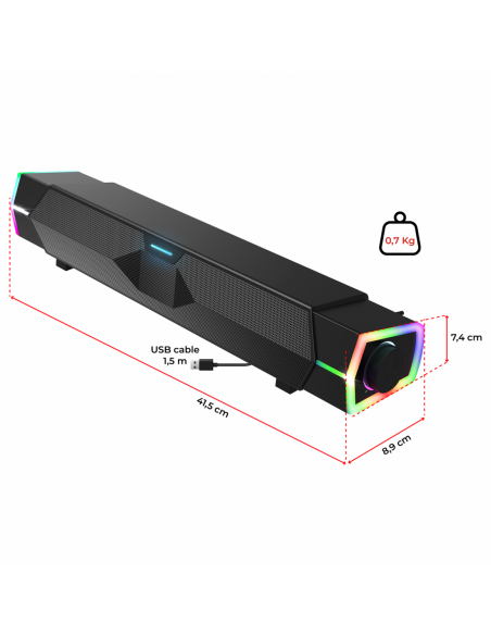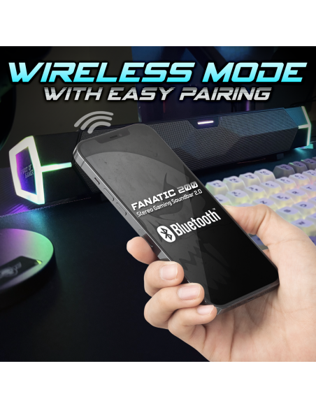 Compacte mais percutante, Fanatic 200 s’intègre sous n’importe quel écran avec style. Facile à brancher via USB et équipée de haut-parleurs 2", elle vous offre un son clair dans un format de 41,5 cm à peine. Légère, puissante et design, elle est taillée pour le combat.