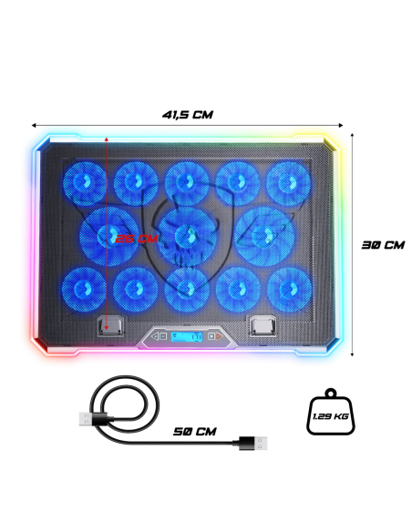 REFROIDISSEMENT PUISSANT : 13 ventilateurs silencieux LED bleus pour un refroidissement optimal et grille métallique micro-perforée pour une dissipation maximale de la chaleur.