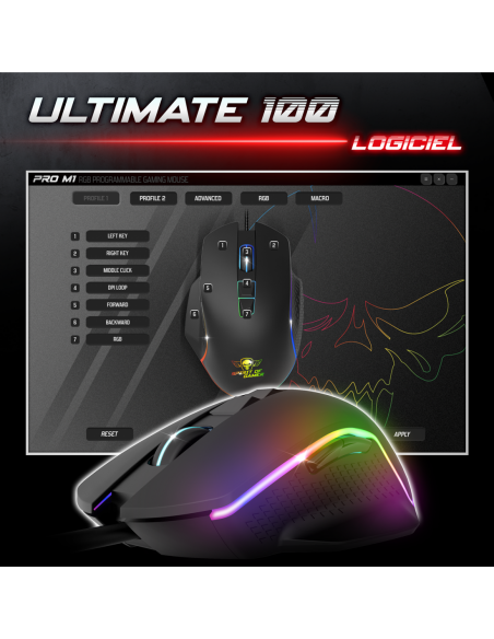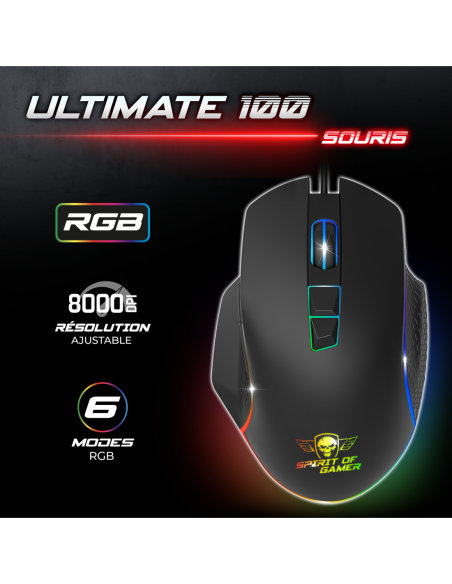 Prenez l’avantage avec la souris Ultimate 100, dotée de 7 boutons programmables, d’une molette fluide et d’un capteur allant jusqu’à 8 000 DPI. Grâce à ses 6 modes RGB et son logiciel de configuration complet (macros, rétro-éclairage, performance), adaptez votre souris à chaque jeu et à chaque style. Un clic réactif, une visée précise, un look unique.