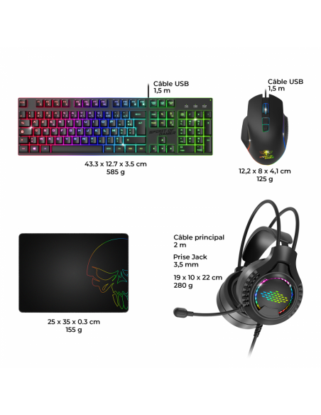 Équipez-vous comme un pro avec le pack Ultimate 100, un set 4-en-1 conçu pour les gamers exigeants. Clavier, souris, casque et tapis : chaque élément a été pensé pour offrir confort, précision et immersion dans toutes vos sessions. Un seul pack, quatre armes pour dominer vos parties.