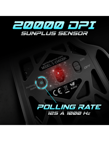 Prenez le contrôle avec ELITE M60 : Mettez toutes les chances de votre côté avec la souris ELITE M60, conçue pour les joueurs à la recherche de performance. Son capteur optique haute précision offre une résolution réglable jusqu’à 20 000 DPI, avec 6 niveaux personnalisables pour s’adapter à votre style de jeu.