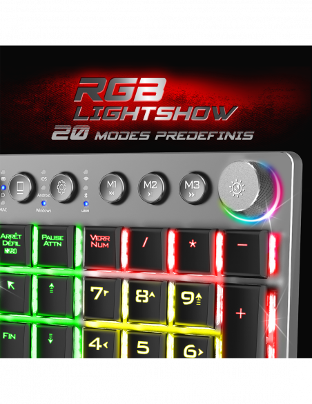EL RGB LIGHTSHOW: Equipado con el sistema LIGHTSHOW, sus controles multimedia dedicados permiten ajustar rápidamente el volumen de sonido, leer, pausar... pero también controlar la retroiluminación RGB.