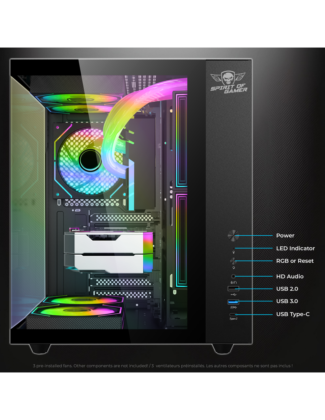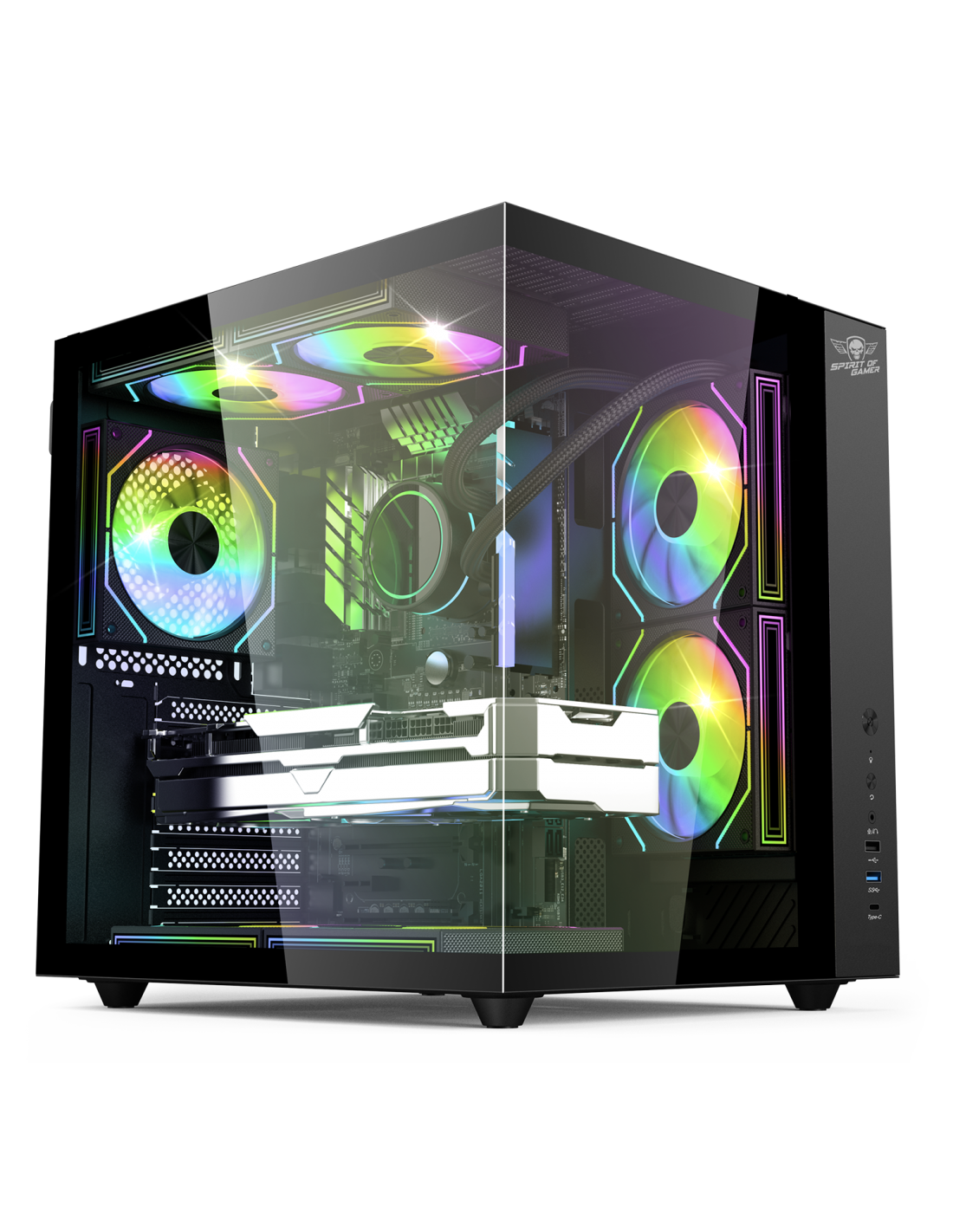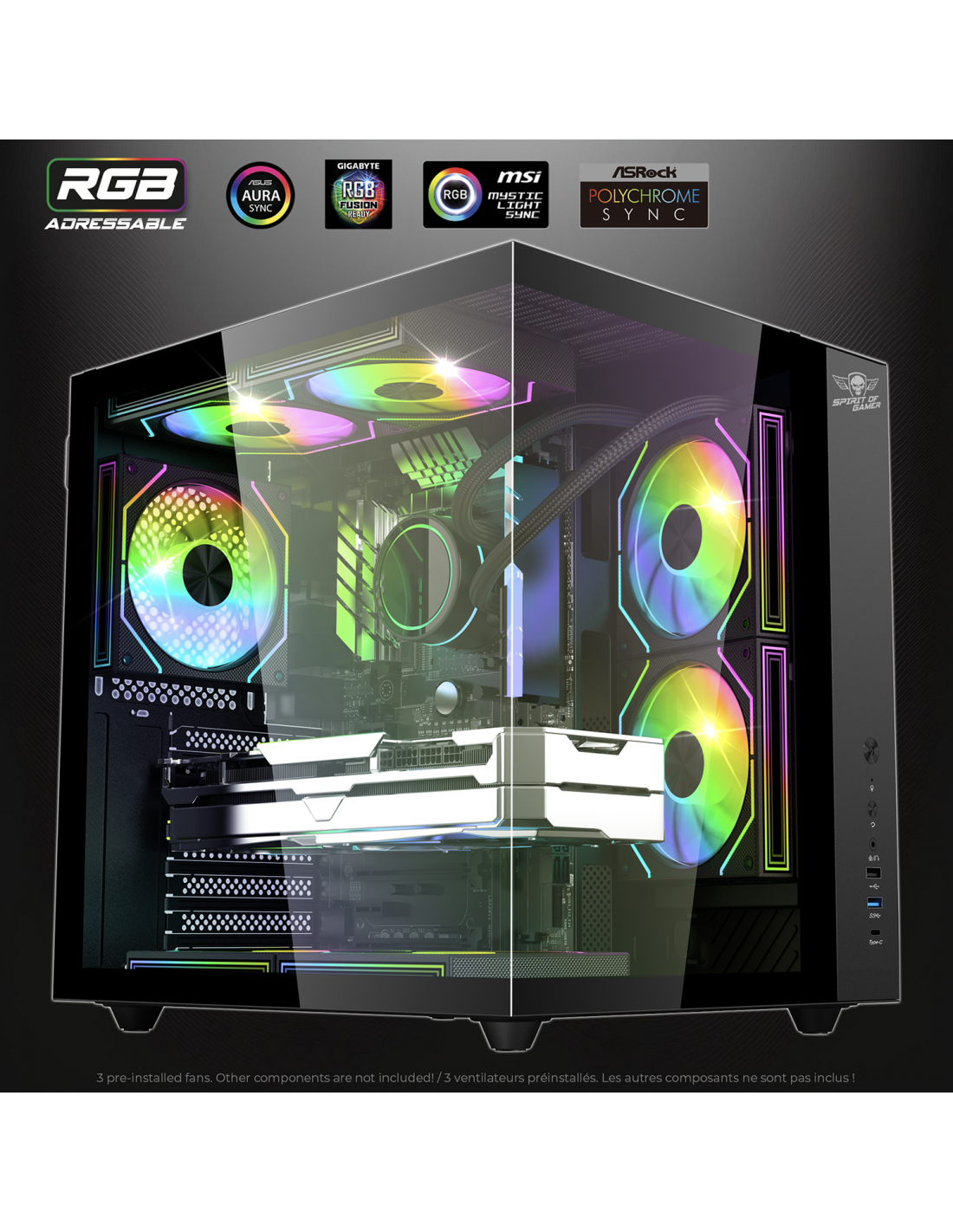 Un refroidissement ARGB performant et évolutif : BANDIT GT embarque trois ventilateurs ARGB préinstallés (2 latéraux et 1 arrière) pour assurer un flux d’air homogène et un refroidissement efficace dès l’installation. Il peut accueillir jusqu’à sept ventilateurs 120 mm et prend en charge un watercooling jusqu’à 240 mm sur la partie supérieure ou latérale. Grâce à ses filtres à poussière amovibles, le système reste propre et performant dans le temps, garantissant une température maîtrisée même lors des sessions de jeu les plus intenses.