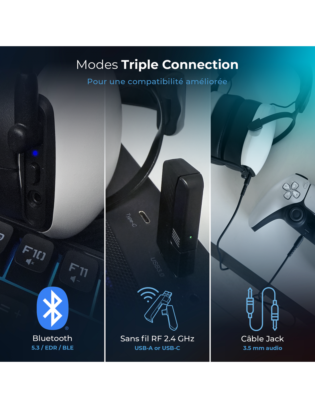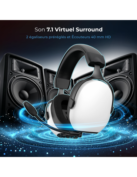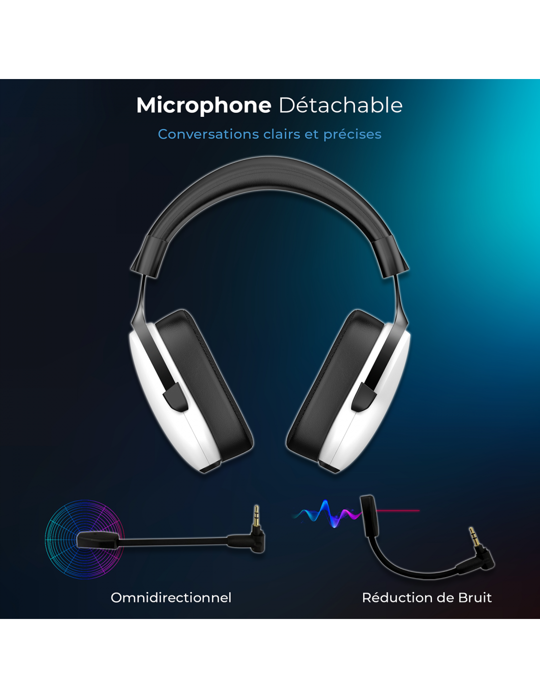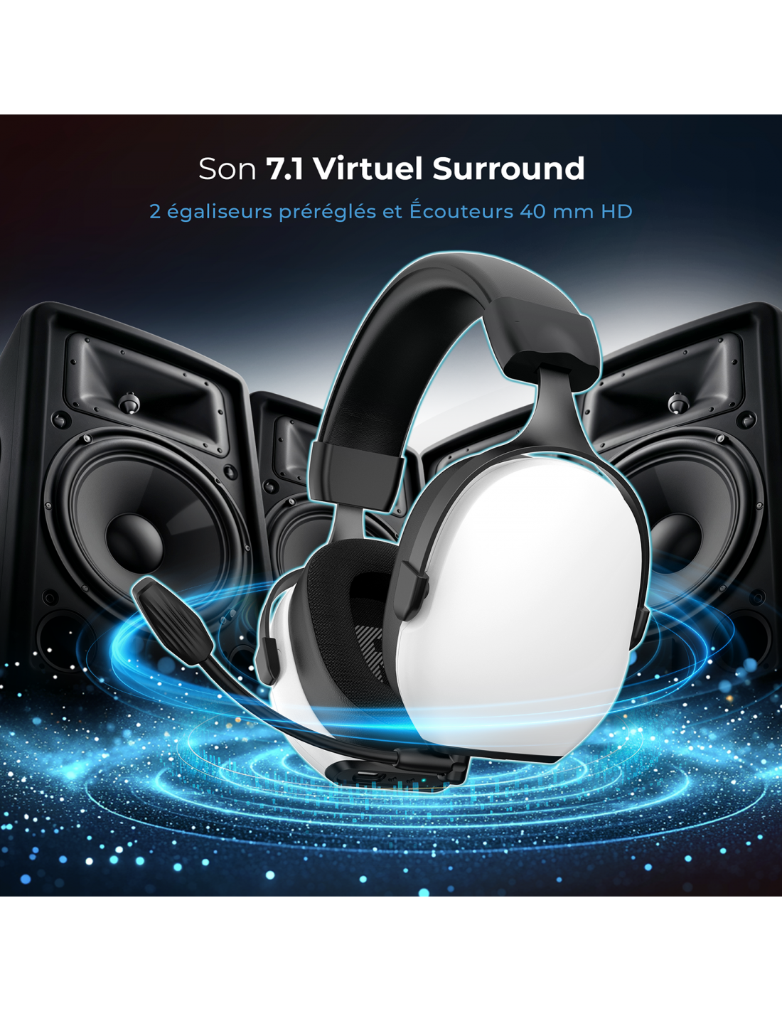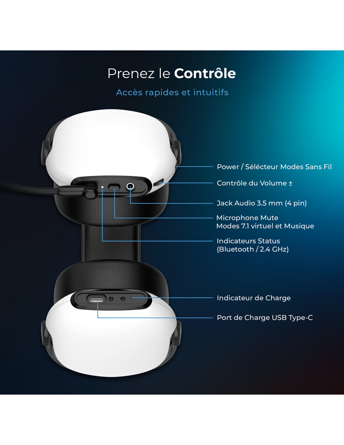 Plongez au cœur de l’action ! Passez instantanément d’un son surround virtuel 7.1, idéal pour localiser chaque mouvement ennemi et vivre une immersion totale, à un mode stéréo 2.0 conçu pour offrir une clarté parfaite dans vos musiques. Chaque explosion, chaque pas et chaque détail sonore prennent vie pour transformer vos parties et vos instants de détente en expériences uniques.