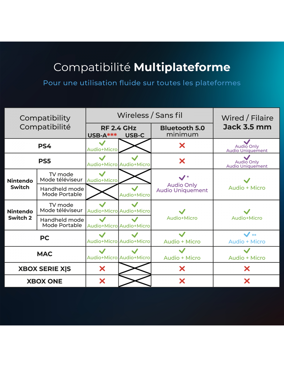 Un contrôle total à portée de main : Réglez le volume ± ou activez-le mute micro directement depuis l’oreillette. Un accès rapide et intuitif qui vous permet de rester concentré sur l’action sans perdre une seconde. Plus besoin d’interrompre la partie pour gérer le son : tout est sous contrôle, pour une réactivité maximale.