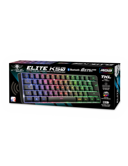 CONFIGURATION 60% COMPACTE : Profitez de toutes les caractéristiques d'un clavier gaming dans un design plus compact, adoptant le format TKL (Ten Keys Less) avec seulement 62 touches, excluant le pavé numérique. ELITE K50 est pensé pour libérer davantage d'espace et offrir une plus grande liberté de mouvement à votre souris.