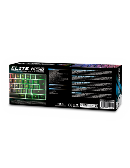 RGB DESIGN : Avec une luminosité réglable et une vitesse d'effets personnalisable, ELITE K50 propose 4 modes de rétroéclairage, comprenant 3 modes Rainbow et un mode dynamique Breathing. Donnez de l'éclat à votre setup en configurant le rétroéclairage directement depuis le clavier à l'aide de combinaisons de touches ultra simples.