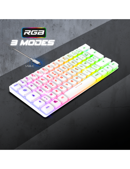 RGB BY SPIRIT : vous bénéficiez d'une visibilité optimale des touches, ce qui en fait un allié redoutable de jour comme de nuit. Le clavier est doté d'un rétroéclairage RGB 3 modes : Rainbow, Breathing, ce qui vous permet de personnaliser vos préférences en matière d'éclairage. Vous pouvez même régler la luminosité et la vitesse du RGB.