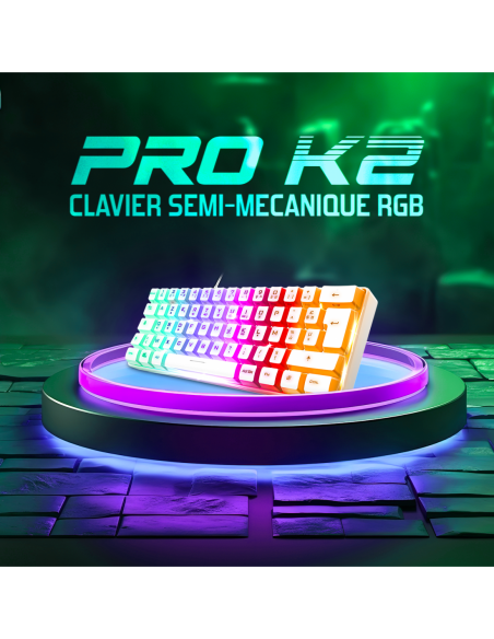 WE ARE GAMERS : PRO K2 offre une réactivité et une précision supérieures qui vous permettent de donner le meilleur de vous-même lors de vos parties intenses. Avec son format 60% compact et 62 touches semi-mécaniques, le clavier PRO K2 est fait pour vous.
