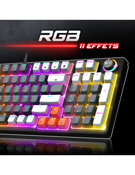 Personnalisez votre setup grâce à ses 11 modes de rétroéclairage RGB. Ajustez la luminosité et la vitesse des effets pour créer une ambiance immersive et totalement adaptée à votre style de jeu, transformant chaque session en une expérience visuelle captivante.