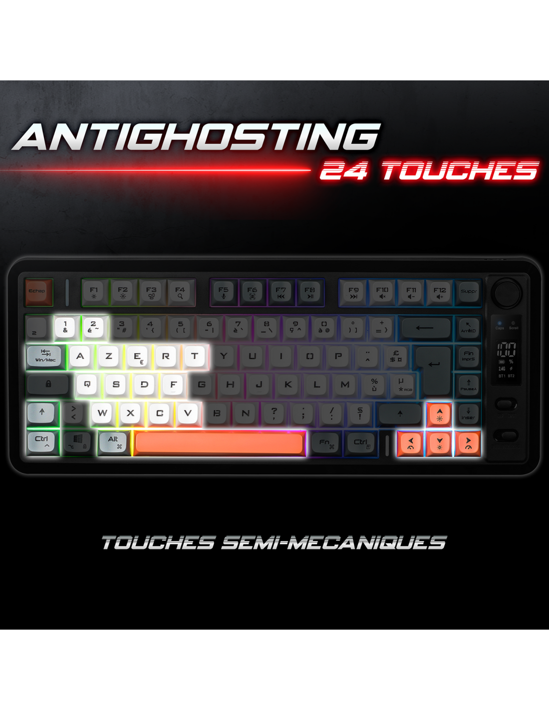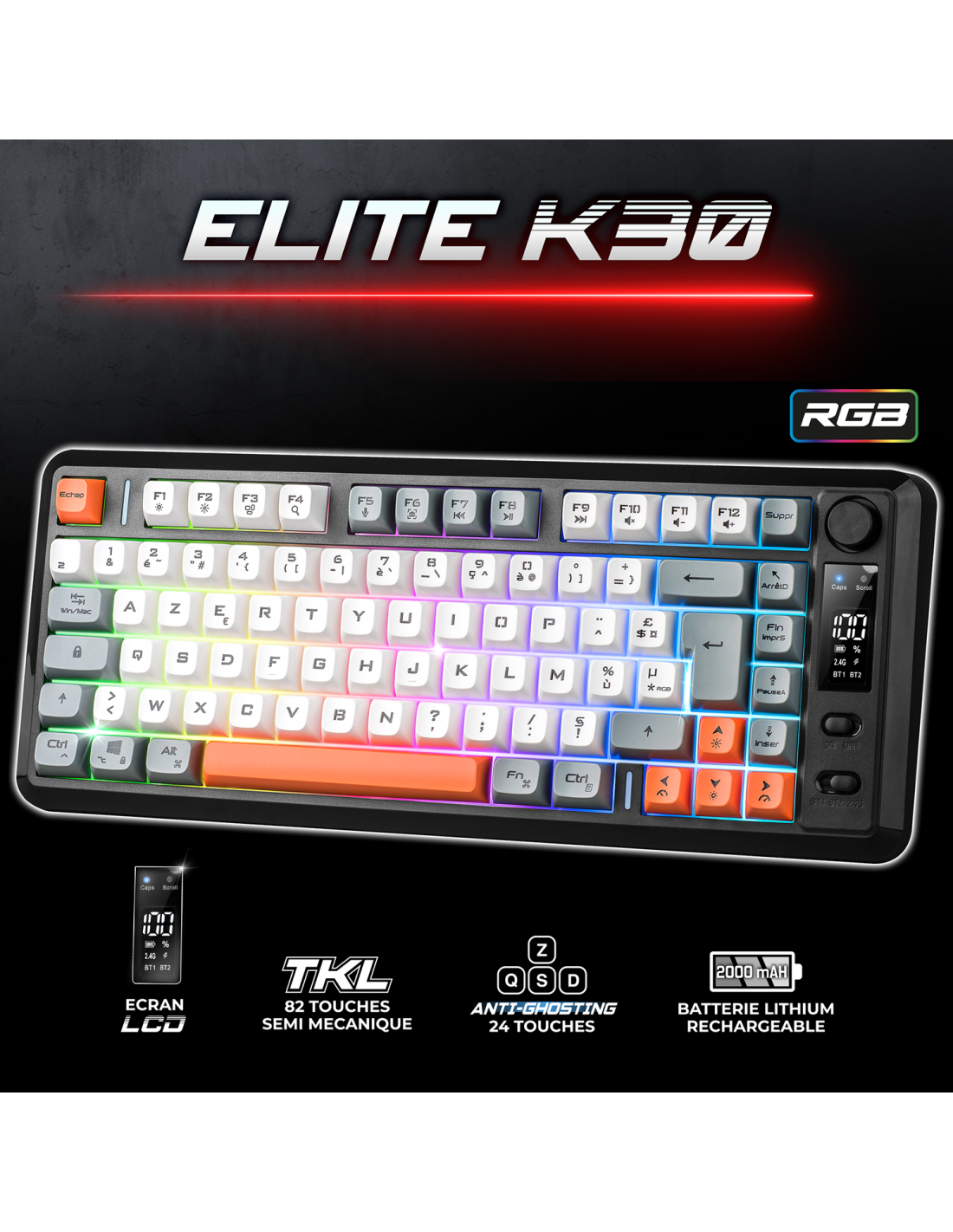 Entrez dans l’arène avec ELITE K30, un clavier taillé pour la compétition. Ses 82 touches semi-mécaniques assurent une réactivité extrême, tandis que les 24 touches anti-ghosting garantissent des combos précis même lors des actions les plus intenses.