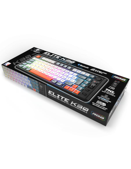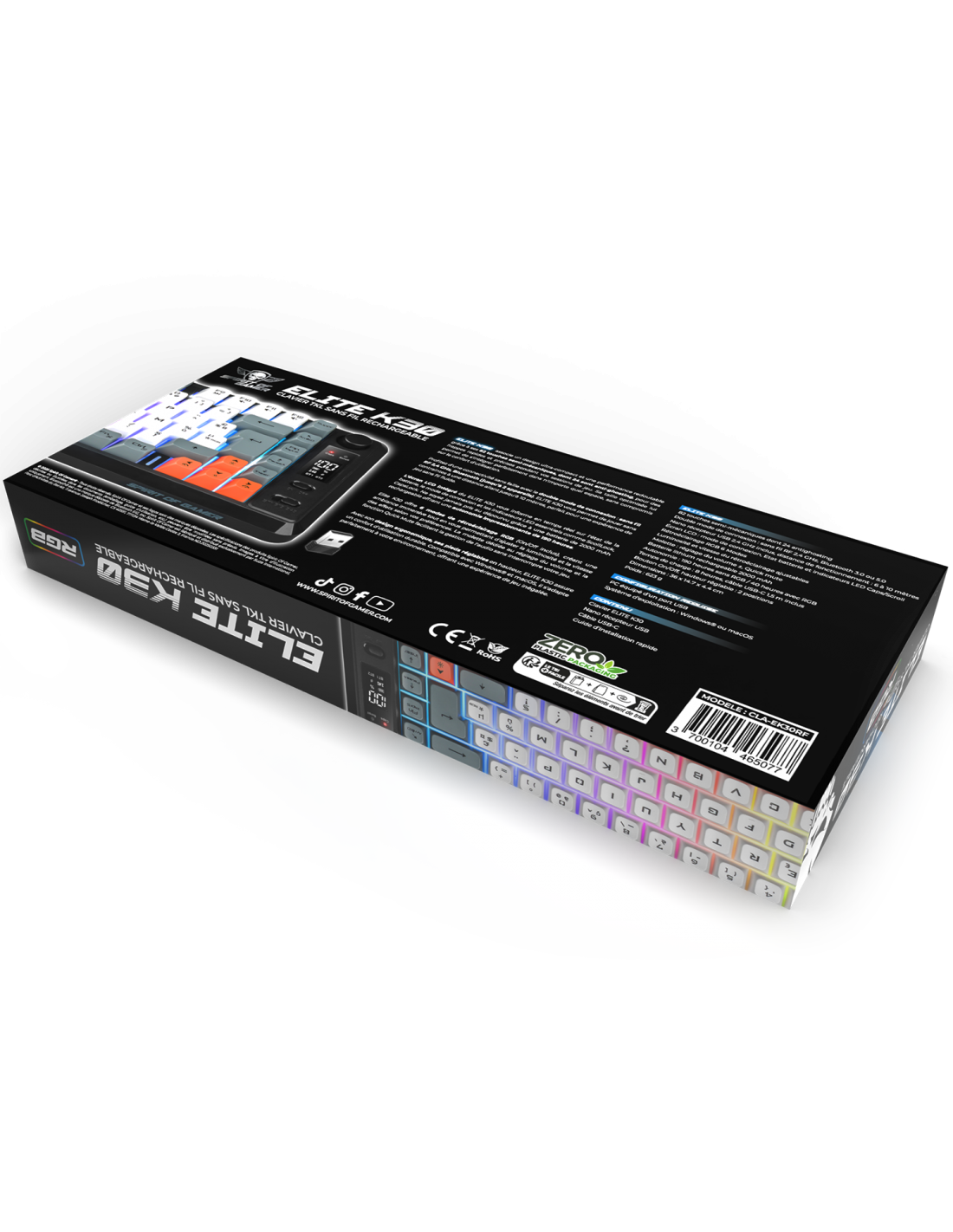 Pensé pour les gamers exigeants, ELITE K30 combine ergonomie et polyvalence avec ses pieds réglables et sa compatibilité Windows® / macOS. Compact, puissant et stylé, il s’impose comme un allié indispensable pour la victoire.