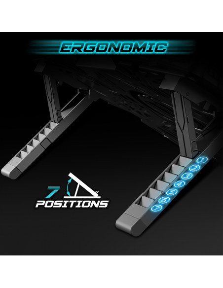 ERGONOMIQUE : AirBlade offre un véritable confort visuel et évite les postures inconfortables et douloureuses avec ses 7 positions réglables. Ajustez l’inclinaison selon vos besoins de 10° à 30°. Côté sécurité, le plateau de dissipation en alliage métallique est équipé de dispositif antichute.