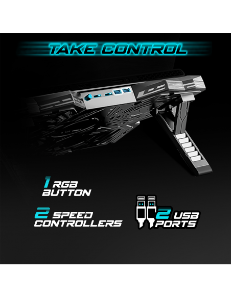 REFROIDISSEMENT OPTIMAL : 4 ventilateurs LED Bleu silencieux refroidissent rapidement votre PC portable pour des sessions de jeu toujours plus intensives ! Grâce à son revêtement en alliage métallique micro-perforé, AirBlade optimise la dissipation de la chaleur pour un refroidissement maximal. .