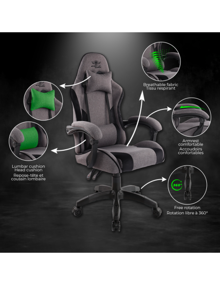 PRÊT POUR LA COMBAT ! La Team Spirit of Gamer est fière de vous présenter la gamme Arena, un siège conçu pour révolutionner votre expérience de jeu et offrir un confort exceptionnel. Avec Arena, vous êtes toujours sous contrôle : son assise moelleuse et sa forme ergonomique garantissent un soutien optimal pour votre dos et vos lombaires. Recouvert de tissu 100% polyestère de haute qualité, Arena se distingue par ses coutures raffinées et ses surpiqûres impeccables, assurant une finition parfaite.