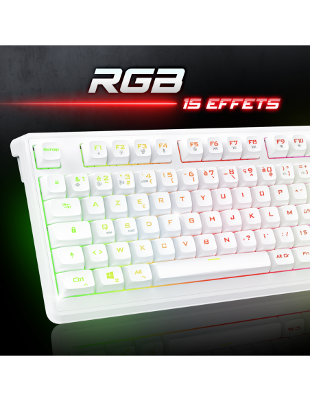 Le rétroéclairage RGB 3 zones du ELITE K60, avec 15 effets RGB et 7 couleurs personnalisables, vous plonge dans une ambiance immersive, tout en vous permettant d'ajuster la luminosité et la vitesse des effets à votre convenance. La molette dédiée pour le réglage du volume et le Quick mute simplifient la gestion de l'audio sans interrompre votre jeu.