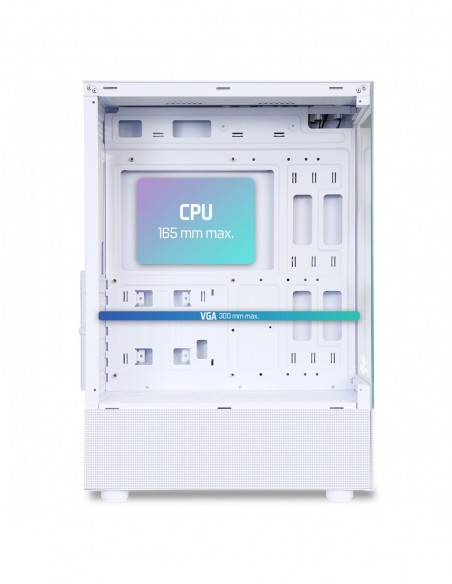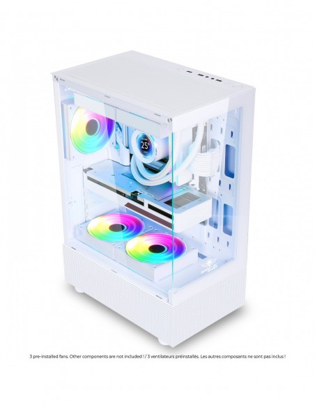 SPECTRA offre une immersion visuelle totale sur votre configuration, mettant en lumière votre puissance de jeu sans compromis. Ce châssis redéfinit l’esthétique du gaming en accueillant les configurations les plus démoniaque ! Compatible avec les cartes mères ATX et mATX, il assure une flexibilité exceptionnelle avec ses 7 ports d'extension. Ses capacités d’exception permettent d'accueillir vos composants XXL : ventirad de 165 mm, carte graphique de 300 mm et alimentation de 160 mm max. La base du châssis, qui accueille les composants générant le plus de chaleur (HDD et Alimentation) est entourée de grilles métalliques sur trois côtés, assurant un refroidissement ultraperformant.