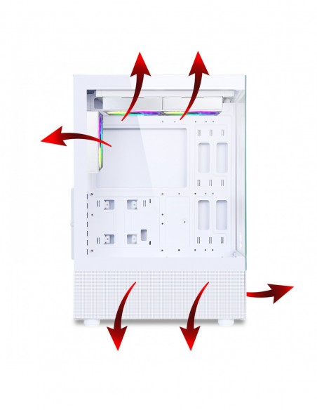 PERFORMANCES OPTIMALES ! Dans le domaine du refroidissement, SPECTRA assure des performances optimales pour vos composants les plus puissants. Avec trois ventilateurs ARGB inclus, dont deux de 120 mm en haut et un de 120 mm à l'arrière, il crée un flux d'air efficace pour maintenir des températures optimales. Avec 2 autres emplacements disponible, il offre une flexibilité inégalée pour personnaliser votre système de refroidissement. Sa compatibilité avec le watercooling permet d'explorer des solutions avancées pour maintenir votre configuration au frais, même lors des sessions de jeu les plus intenses.