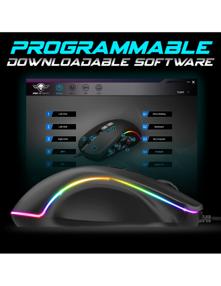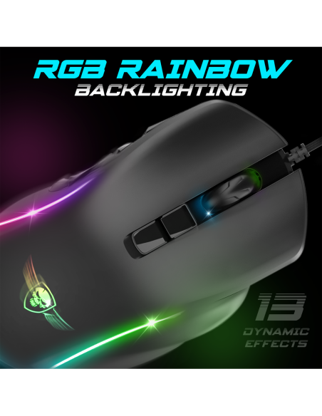 RGB DYNAMIQUE : Testreszabhatja az egért a vágyai szerint, az ELITE-M30 integrálja a testreszabható RGB háttérfényt 13 dinamikus RGB-hatással és egy további móddal, amely lehetővé teszi az egér számára, hogy kövesse a zene vagy a golyók ritmusát.