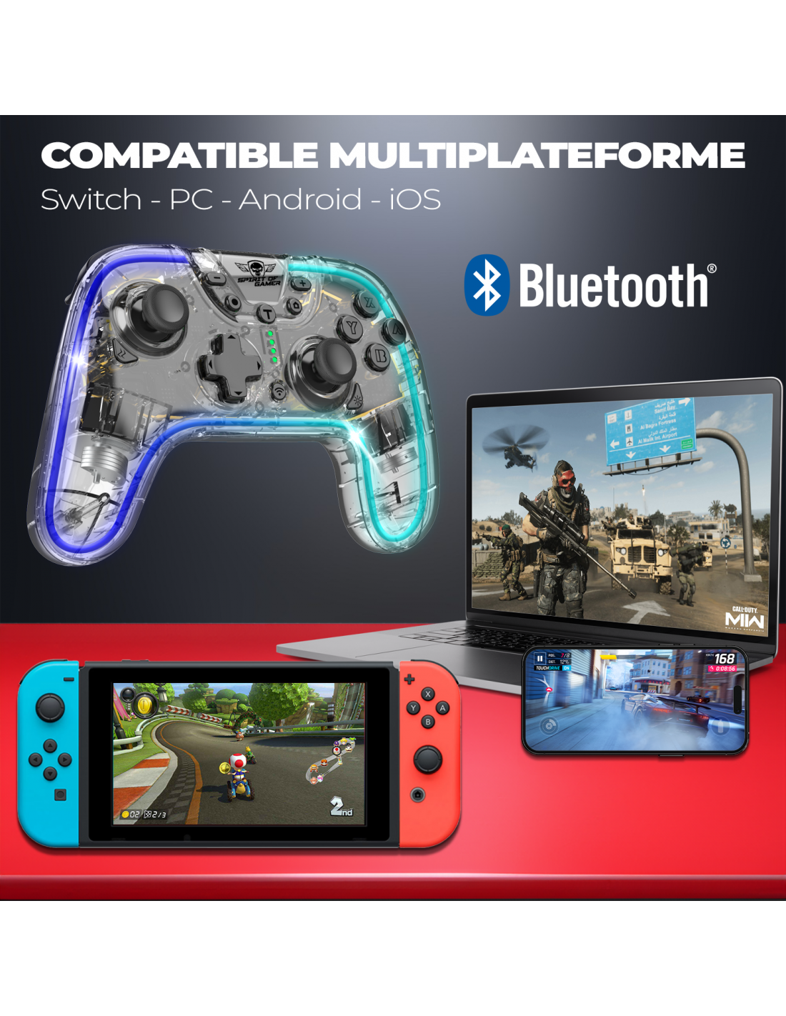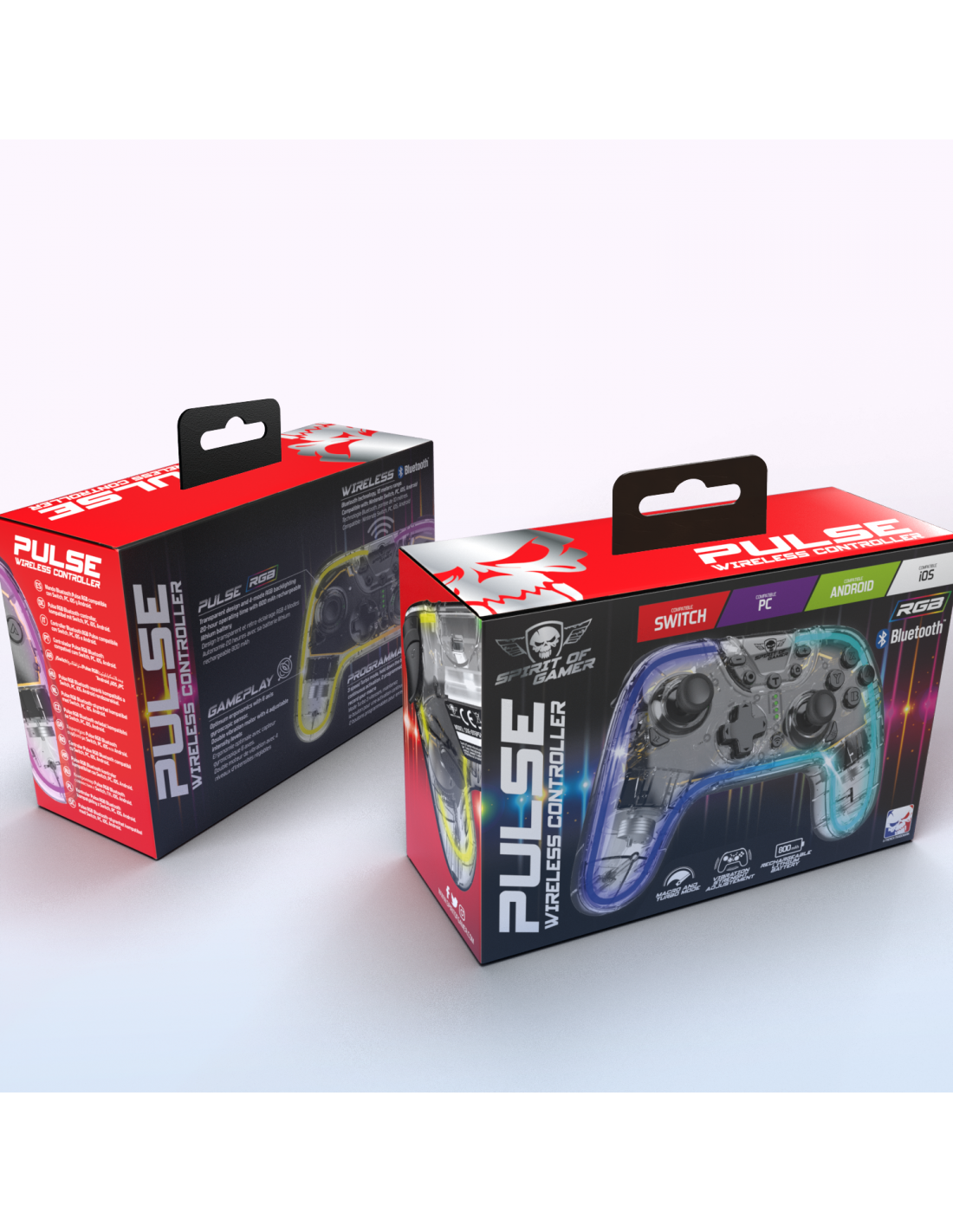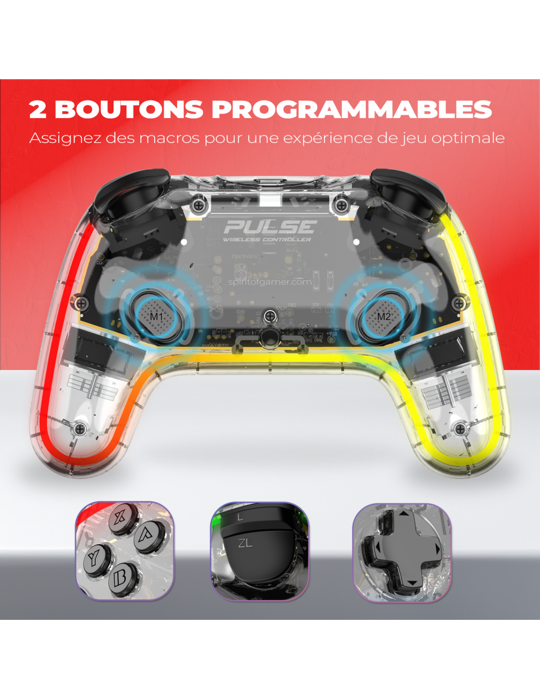 Senza fili! Immergiti nel cuore di un'esperienza di gioco senza precedenti con il nostro controller Pulse, dotato di tecnologia bluetooth wireless con una portata operativa estesa fino a 10 metri. Liberarsi dai cavi e immergersi completamente nell'azione, sia su Interruttore, PC, iOS o Android.