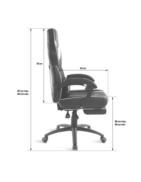 • INSTALLEZ-VOUS comodamente davanti alla vostra configurazione con Mustang: sedute e cartelle capitizzate, similicuir rivestimento, collo e cuscini lombari, braccioli articolati.. Approfittate di uno schienale reclinabile 135°, un poggiapiedi integrato per le pause di salvataggio: ideale dopo una lunga sessione di eSport. Mustang Series è disponibile in 4 colori: blu, bianco, rosso e completamente nero.