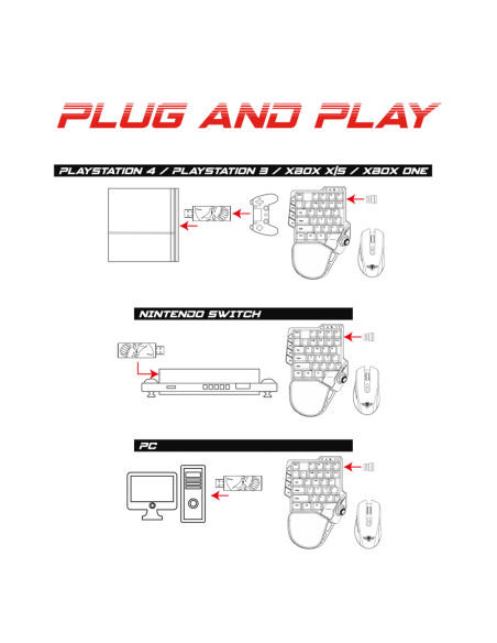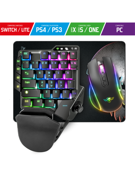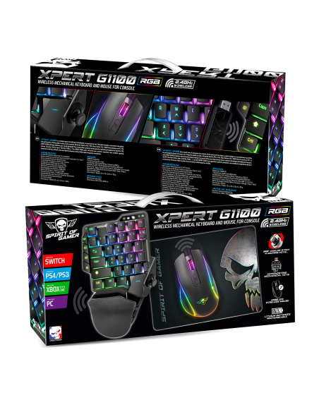 PACK SENZA FIL 2,4 GHz COMPLETA: Questo pacchetto include un tappeto, un mouse wireless RGB e una tastiera meccanica wireless RGB. La tastiera include anche un convertitore che espande i tuoi orizzonti di gioco, permettendoti di giocare su varie console, tra cui Nintendo Switch, PS4, PS3, Xbox Serie X FindS, Xbox One, e anche su PC. XPERT G1100 sostituisce efficacemente il controller di gioco, offrendo un controllo preciso simile a quello di una tastiera e del mouse, per un'esperienza di gioco finale. Tutto funziona in modalità wireless, senza latenza, grazie alla tecnologia di connessione radiofrequenza 2.4 GHz.