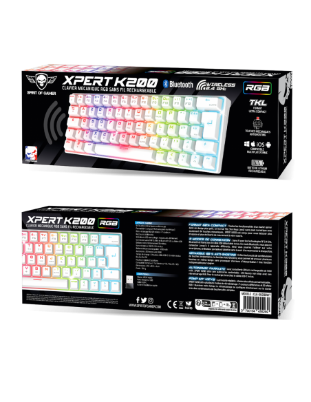 22 MODI RGB: XPERT-K200 va ben oltre una semplice tastiera grazie alle sue funzioni di personalizzazione avanzate. Hai il controllo totale sul retroilluminazione, con la capacità di regolare la luminosità e la velocità degli effetti secondo le tue preferenze. XPERT-K200 offre una tavolozza di retroilluminazione impressionante, con non meno di 7 colori diversi e 22 effetti RGB per migliorare la configurazione. La configurazione di questi effetti viene effettuata direttamente dalla tastiera grazie a combinazioni di tasti incredibilmente semplici o direttamente dal software.