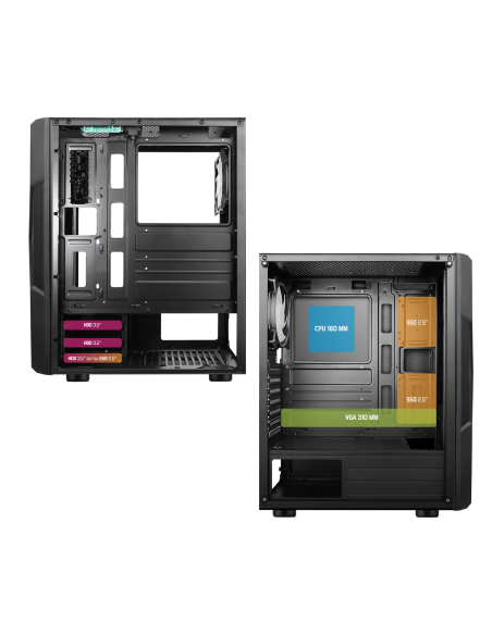 CLONE SERIE: Clone 3 is ideaal voor je gaming-opstelling. Het is ruim, compatibel met ATX- tot Mini-ITX-moederkaarten en kan een 310 mm grafische kaart bevatten, terwijl het een geoptimaliseerde en kleurrijke ventilatie biedt dankzij de 2 geïntegreerde ventilatoren en de 6 extra plekken. Zijn gedurfde ontwerp resulteert in transparante wanden van gehard glas en een ARGB-systeem dat compatibel is met de meeste moederborden met een 3 Pins / 5V ARGB-connector.