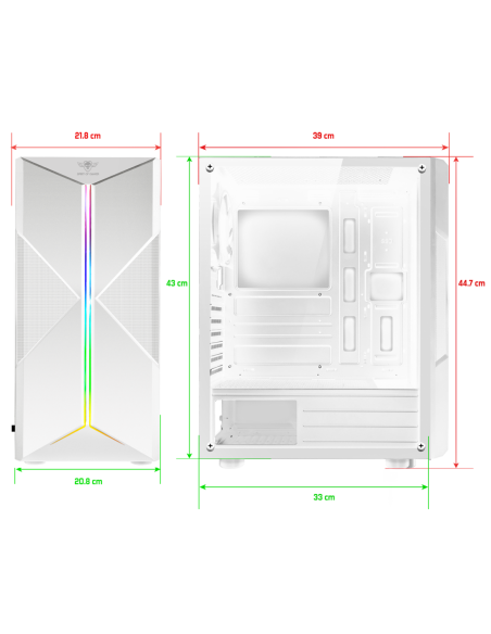 CLONE SERIE: Clone 3 is ideaal voor je gaming-opstelling. Het is ruim, compatibel met ATX- tot Mini-ITX-moederkaarten en kan een 310 mm grafische kaart bevatten, terwijl het een geoptimaliseerde en kleurrijke ventilatie biedt dankzij de 2 geïntegreerde ventilatoren en de 6 extra plekken. Zijn gedurfde ontwerp resulteert in transparante wanden van gehard glas en een ARGB-systeem dat compatibel is met de meeste moederborden met een 3 Pins / 5V ARGB-connector.