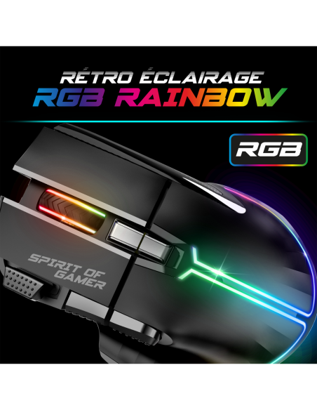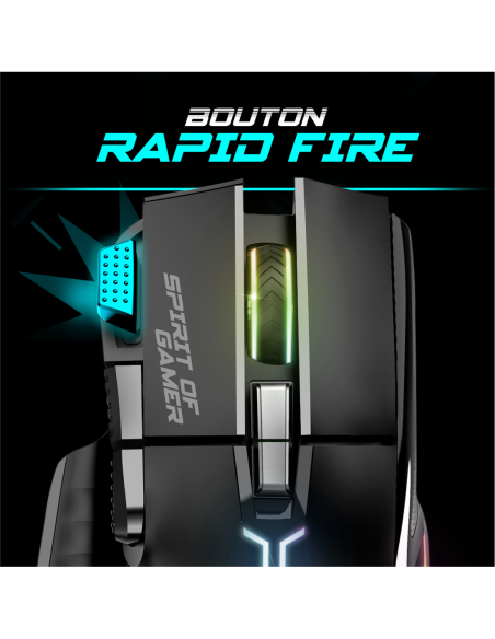 RAPIDFIRE: De muis draadloos ULTIMATE 600 is de perfecte partner om je spelarsenaal aan te vullen. De PixArt 3312 sensor biedt een resolutie die op 3 niveaus (1200, 2400, 4800 DPI) kan worden verstelbaar uitzonderlijk perfect voor alle soorten spelletjes. Met 8 knoppen, waaronder 1 RapidFire, 10 G versnelling en een snelheid van 4000 fps, zal deze muis reageren op uw kleinste bewegingen. Met zijn RGB Rainbow achtergrondverlichting voegt de muis een meeslepende sfeer toe aan je spelsessies.