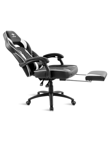 INSTALLEZO confortavelmente em frente à sua configuração com Mustang: assentos e pastas capitulares, revestimento similicuir, pescoço e almofadas lombares, braços articulados.. Aproveite um encosto reclinável de 135°, um apoio integrado aos pés para pausas de salvamento: ideal após uma longa sessão de eSport. Mustang Series vem em 4 cores: azul, branco,...
