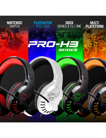IMMERSION 2.0: PRO-H3 Edition é uma nova gama de fone de ouvido estéreo 2.0 especialmente projetado para imergir você diretamente no coração da ação. Os alto-falantes de 50 mm oferece sons de incrível clareza e graves poderosos.