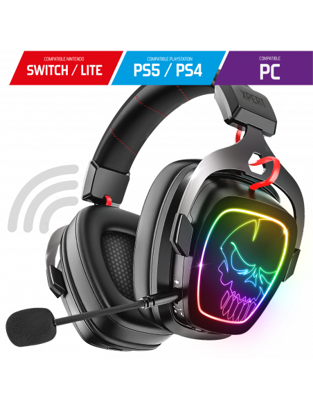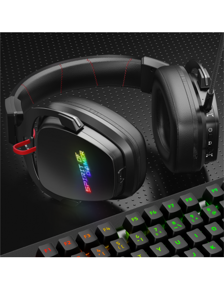 RGB RAINBOW: Dê vida à sua configuração com a luz de fundo Rainbow RGB dos auscultadores. Com seu arco de alumínio estofado ajustável, suas almofadas acolchoadas acolchoadas feitas de couro... o capacete é ultra confortável.