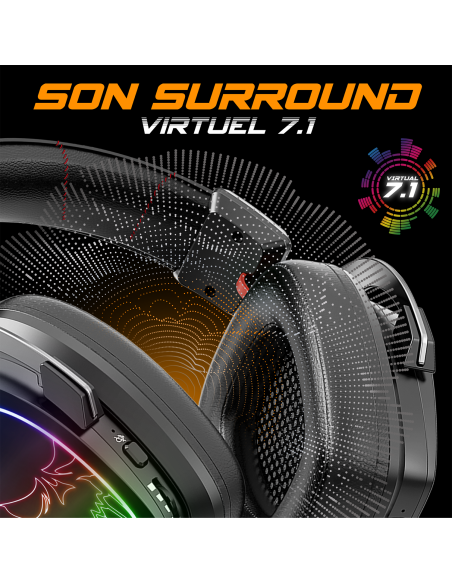 7.1 VIRTUAL SURROUND SOUND: Falantes de 50 mm e seus cerca de 7,1 para estar em imersão total em seus jogos e filmes favoritos. Microfone de redução de ruído.