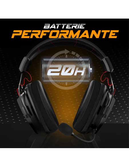 BATTERIA DE PODERES A bateria de lítio de 1000 mAh oferece uma gama de 20 H (sem RGB / Volume 50%) e é carregada em 3 horas.