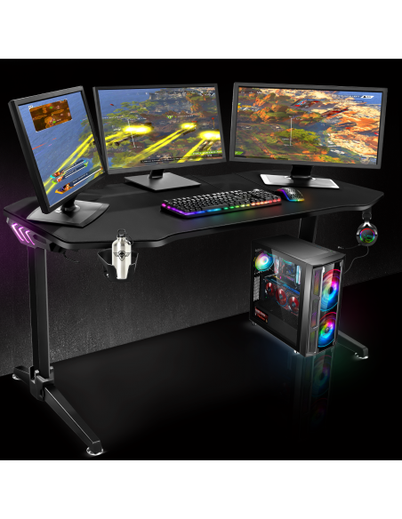 • SURFACE XXL: O novo Gaming Office HEADQUARTER 400 com seu tapete completo oferece um design e acabamento sólido para sua configuração. Sua superfície XXL de 140 cm * 60 cm é grande o suficiente para acomodar 3 telas 27’. Seu novo QG receberá facilmente toda a sua configuração: Teclados, Souris, Capacetes e até mesmo seu microfone para transmitir suas partes.