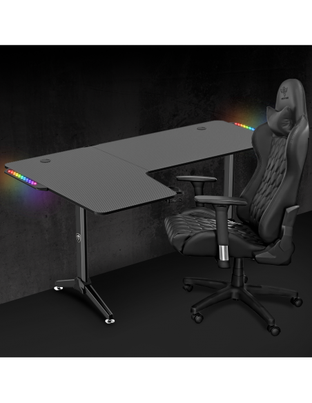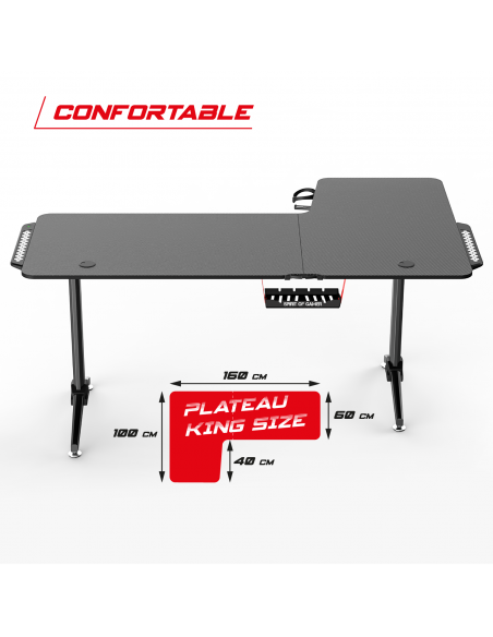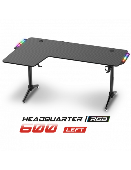 ROBUST Com sua bandeja de metal lacado preto coberto por uma placa de efeito de carbono de 16 mm de espessura, o escritório de canto oferece um espaço de design e jogos sóbrios ao mesmo tempo. Ele se encaixa perfeitamente em uma sala de estar, em um quarto, ou em um escritório. Escolha o ângulo direito, a sede 600 está disponível com um retorno direito ou esquerdo.